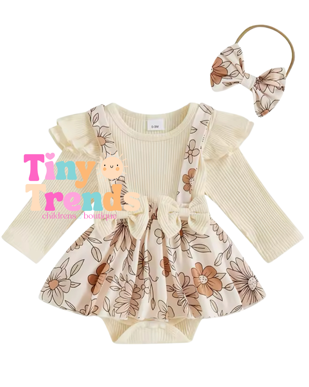 The Ellie Floral Romper is the perfect outfit for your little one. Made with long sleeves and a coordinating bow, this baby girl romper is both stylish and comfortable. The beautiful floral print adds a touch of charm to this must-have piece for your child's wardrobe.