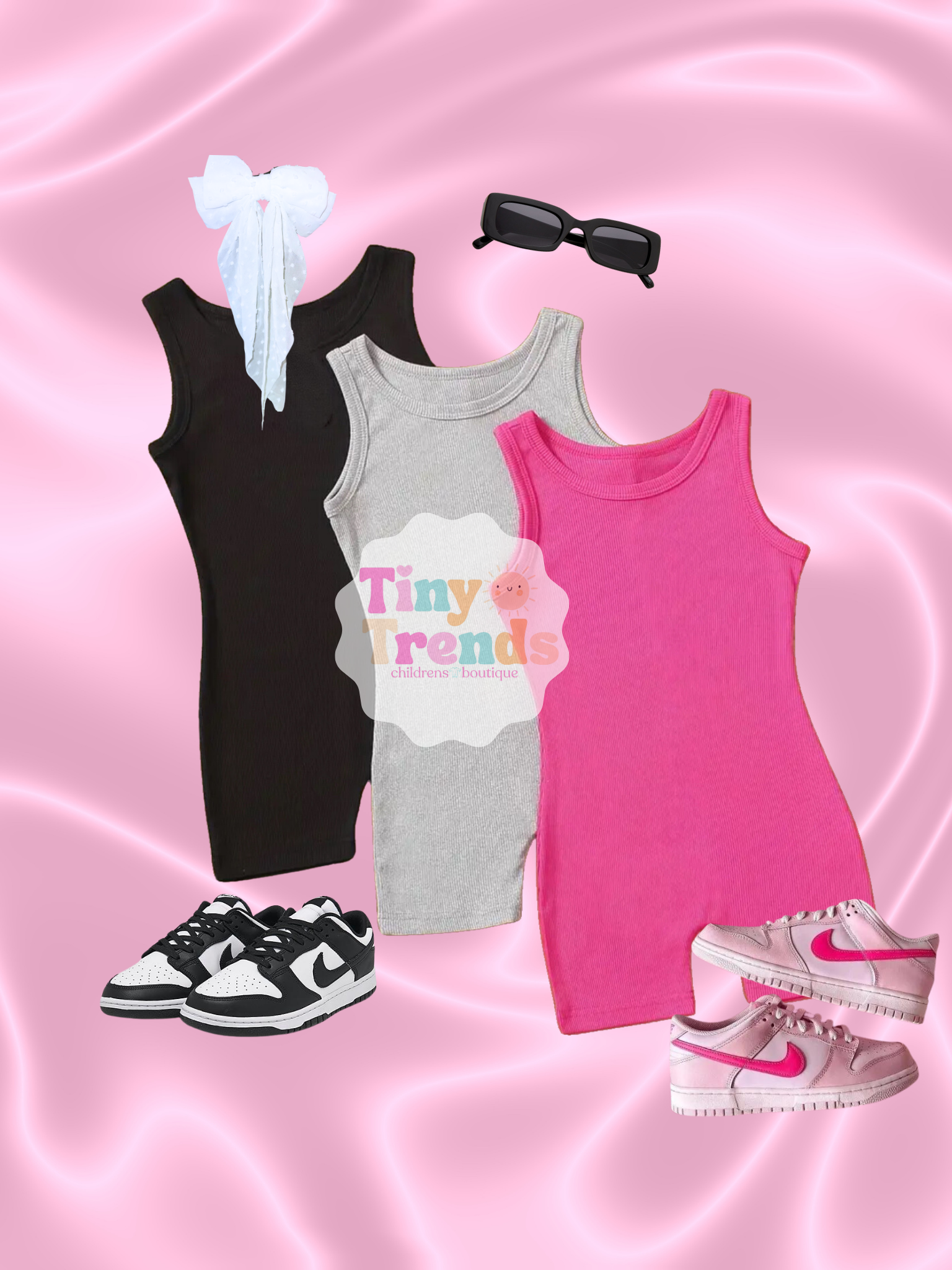 Keep your little girl stylish and comfortable in our ribbed romper! This one piece bodycon romper features a soft, ribbed material for all day wear. Perfect for any occasion!