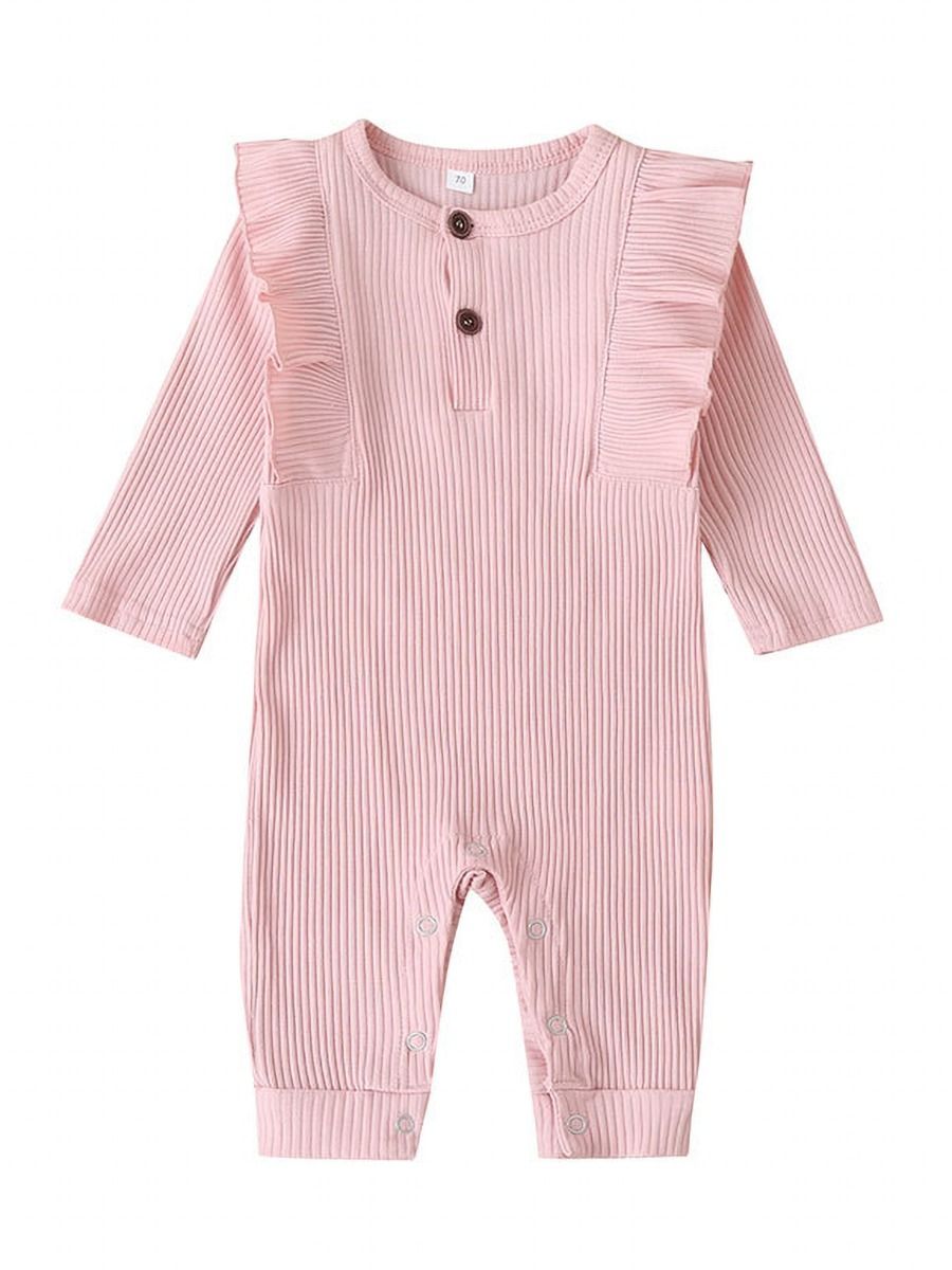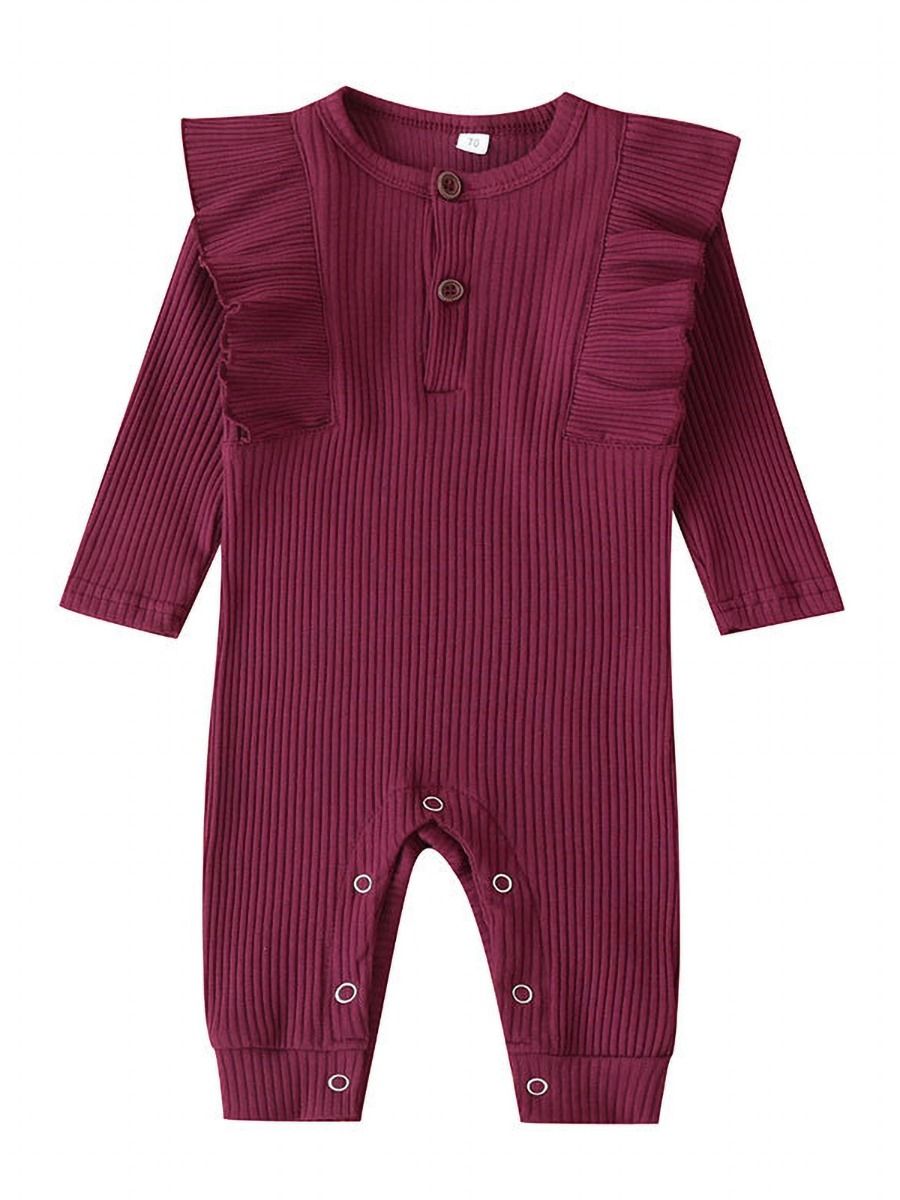 Super Cute Baby Girls Jumpsuit. This Ribbed Material is so soft and warm but not too thick. The ruffles give it extra cute detailing.